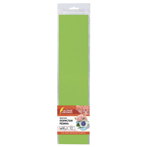 Пористая резина (фоамиран) для творчества, СВЕТЛО-ЗЕЛЕНАЯ, 50х70 см, 1 мм, ОСТРОВ СОКРОВИЩ,