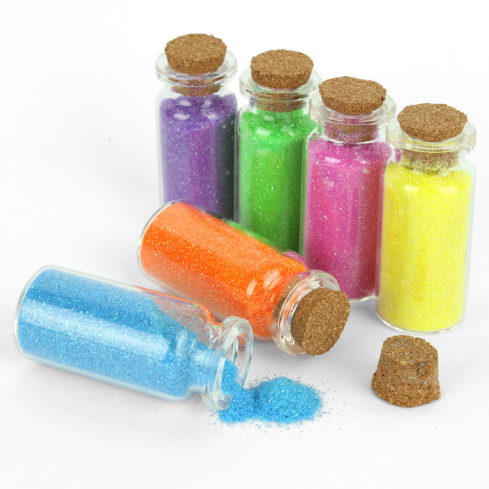 Блестки глиттер набор 6цв неон в баночках с пробкой, в блистере