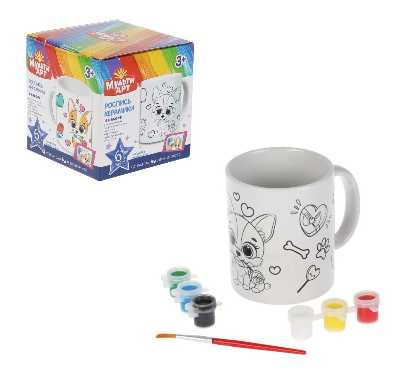 MultiArt. Кружка керамическая под роспись (краски, кисточка)