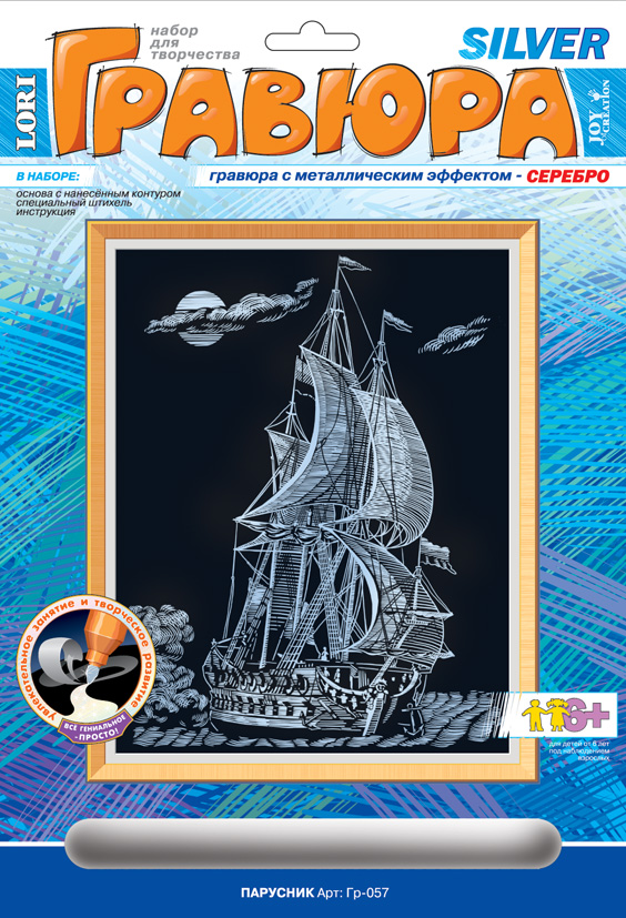 Гравюра с эффектом серебра "Парусник"