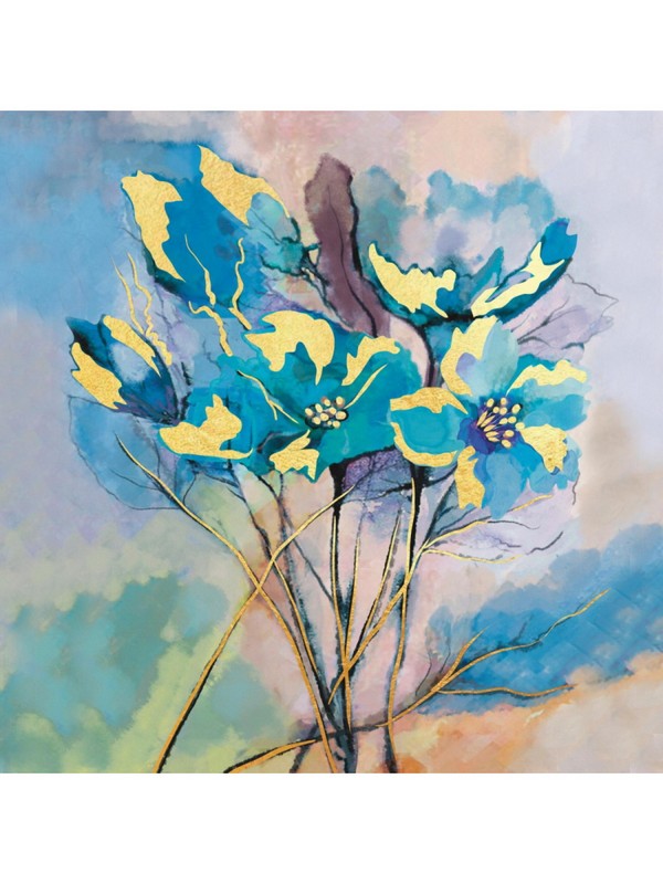 Холст с красками 40х40 см по ном., с зол.поталью (в кор.) (30цв) Голубые цветы (Арт. Х-4219)