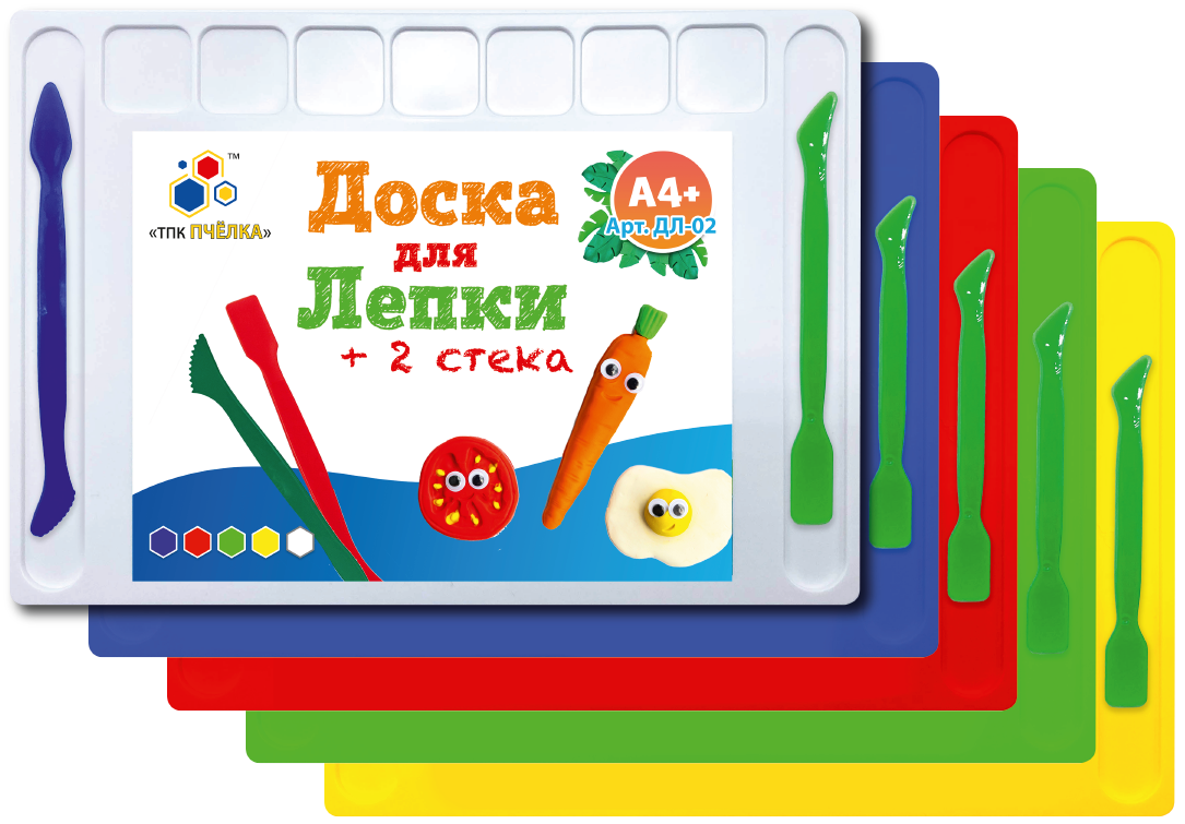 Доска для лепки А4 цветная, 2 стека , цв.ассорти