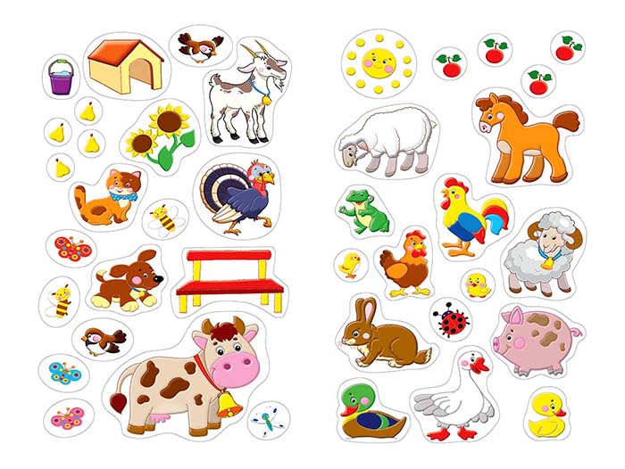Многоразовые наклейки 21,5*28,5см 2 цв.стр.+ 2л. накл."В деревне"