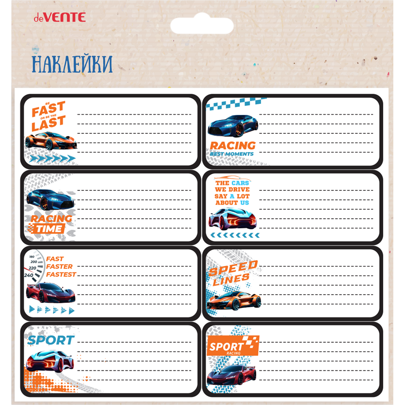 Набор наклеек для тетрадей "deVENTE. Fast Or Last" 40x96 мм, 8 шт, в пластиковом пакете с блистерным подвесом