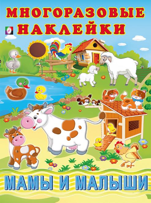 Многоразовые наклейки 21,5*28,5см 2 цв.стр.+ 2л. накл."Мамы и малыши