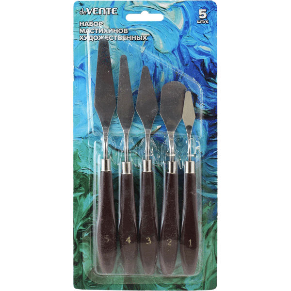 Набор мастихинов deVENTE Art 5шт, форма рабочей части ассорти, с деревянными ручками, в блистере