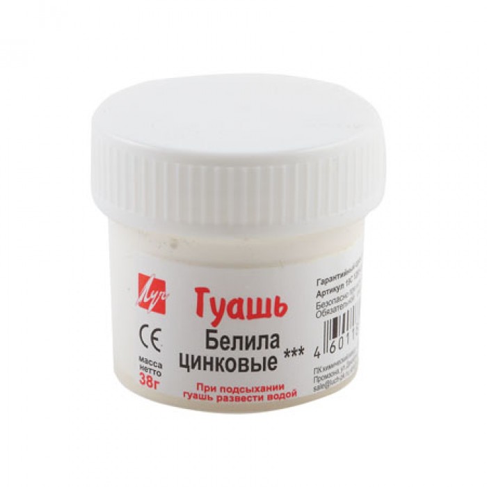 Гуашь белила цинковые и титановые в баночках 20 мл. изготовлены на основе натуральных компонентов и высококачественных пигментов.