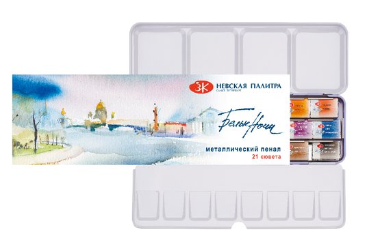 Краски акварельные художестенные Белые Ночи металл, 21 цвет в кюветах х2,5 мл.
