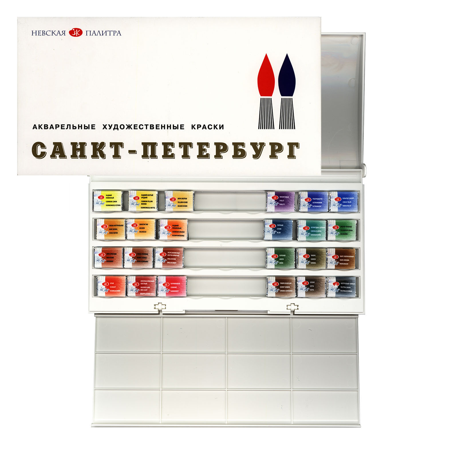 Краски акв. худож Санкт-Петербург" 24 цв.,пласт.упаковка,в кюветах