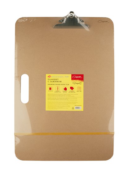 Планшет предназначен для крепления бумаги. Изготовлен из МДФ толщиной 5 мм. Планшет легкий, тонкий и прочный. Можно работать на весу, устанавливать на мольберт или этюдник. Идеален для живописи и графических работ на пленэре. Гладкая поверхность не повредит бумагу. Зажим и резинка надежно фиксируют лист, не оставляя заломов. Выдвижной подвес зажима позволяет разместить планшет на вертикальной поверхности.