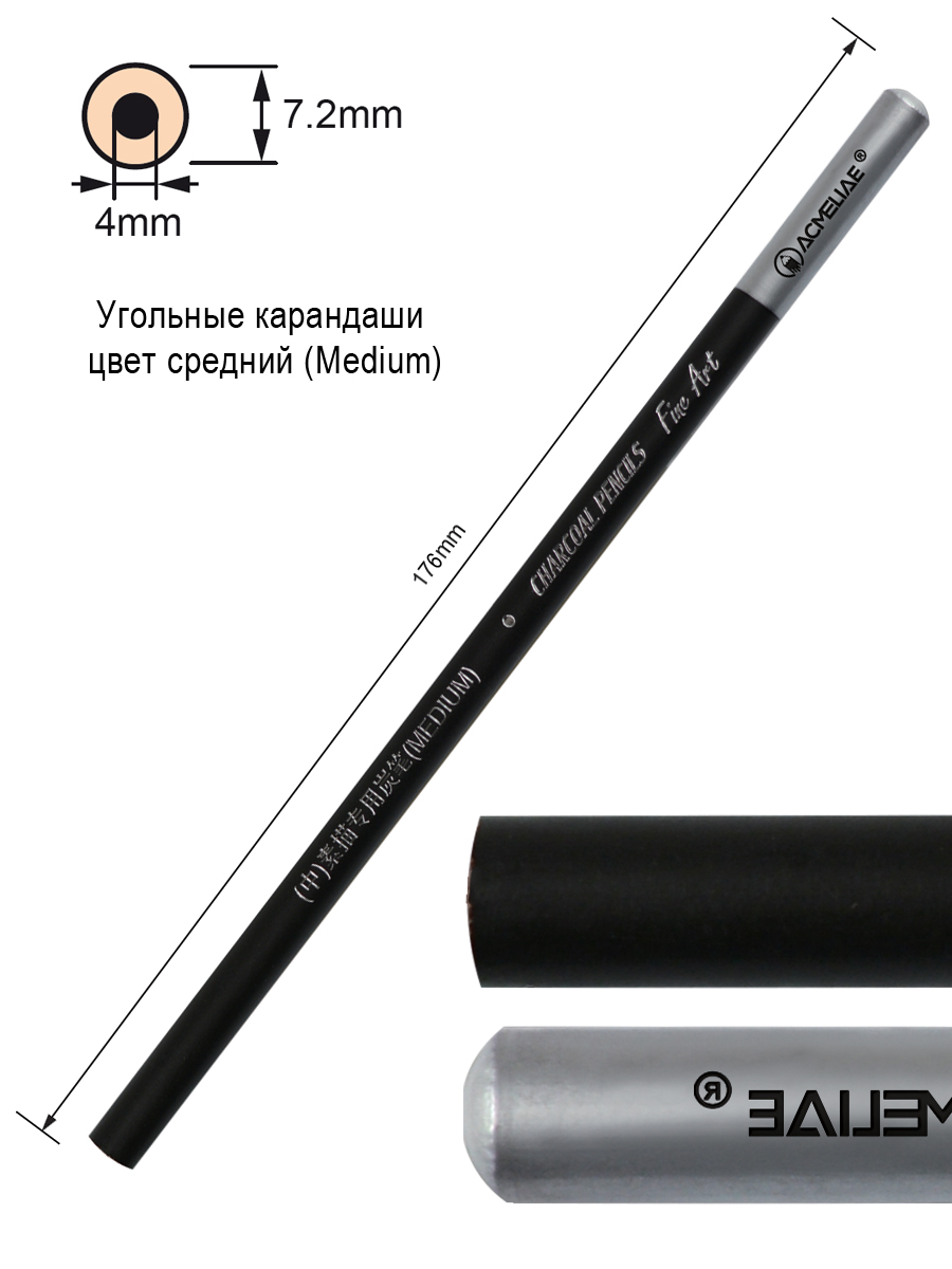 Высококачественные угольные карандаши для художественных работ из натуральной древесины для создания рисунков, набросков, эскизов и т.п. Угольные карандаши универсальны в рисовании и обладают огромными возможностями в передаче света и тени. Удобны для проработки контуров и мелких деталей. Грифель - ударопрочный, мягко рисует по бумаге. Тип товара: карандаш угольный. Корпус: круглый. Нанесение: Medium. Длина: 175 мм. Форма корпуса: круглая. Упаковка: коробка.