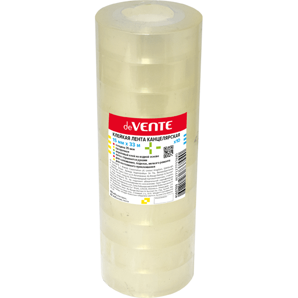 Клейкая лента канцелярская "deVENTE" прозрачная, 35 мкм, 15 ммx33 м, пластиковая втулка