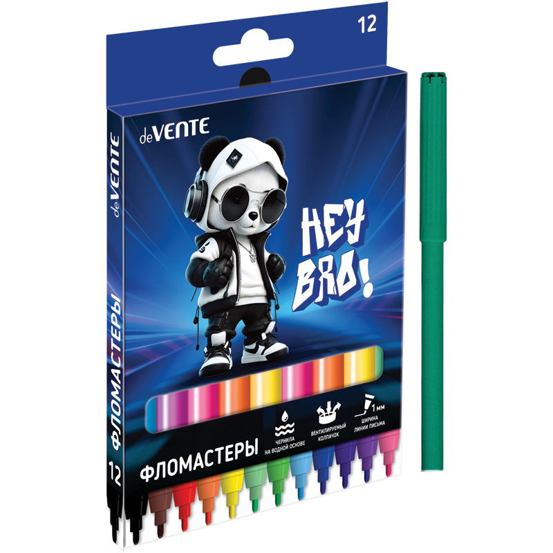 Фломастеры "deVENTE. Hey Bro" 12 цветов с вентилируемым колпачком, в картонной коробке с подвесом