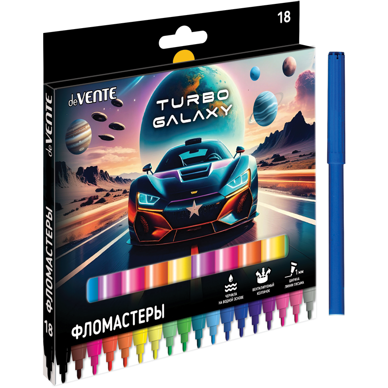 Фломастеры "deVENTE. Turbo Galaxy" 18 цветов с вентилируемым колпачком, в картонной коробке с подвесом