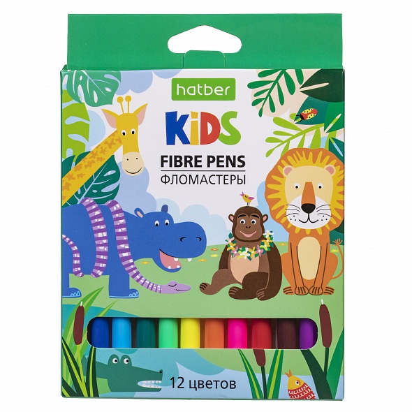 Фломастеры HATBER "Африка" 12цв вентилир.колпачок, смываемые, к/к