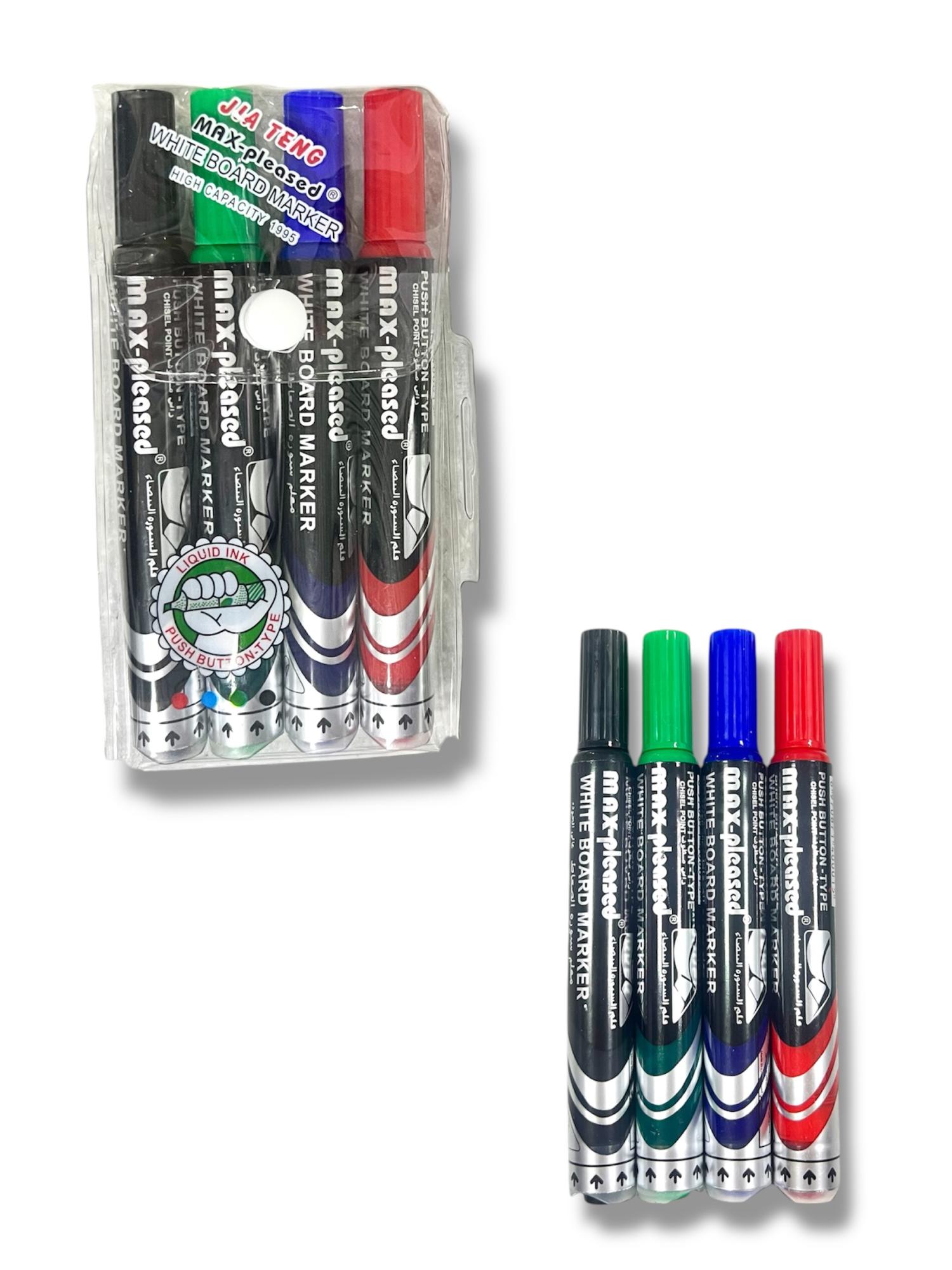 Набор маркеров для доски 4цв с жидкими чернилами, корпус с кнопкой