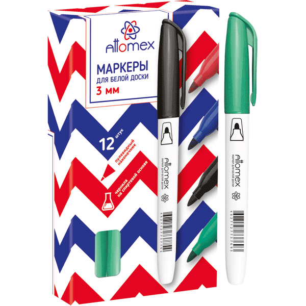 Маркер для белой доски Attomex круглый корпус с клипом, пулевидный наконечник, ширина линии до 4 мм, зеленый