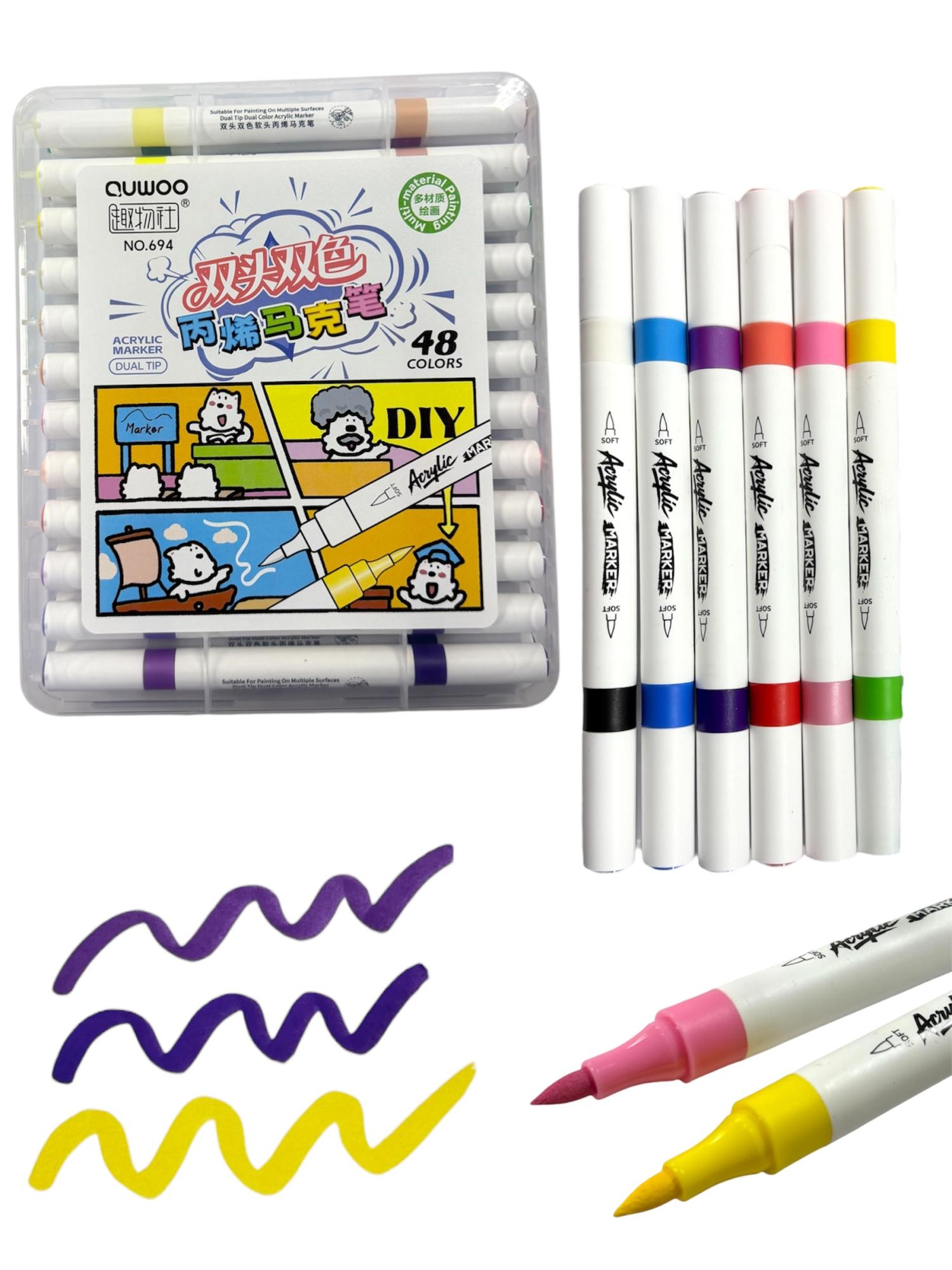 Маркеры акриловые двухсторонние 48цв в пласт.пенале