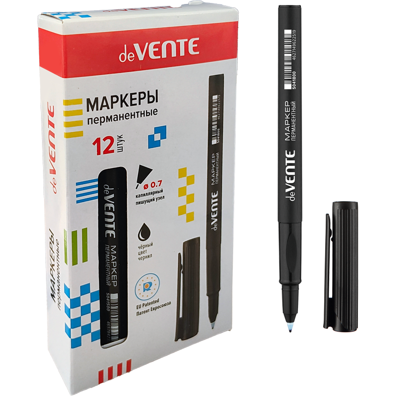 Маркер перманентный тонкий "deVENTE" круглый корпус, с эргономичным трёхгранным грипом, капиллярный 0,7 мм наконечник в пластиковой обойме, черный
