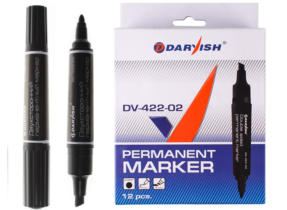 Маркер перманентный двухсторонний DARVISH пулевидный и клиновидный након 1/5мм, черный