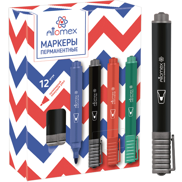 Маркер перманентный Attomex круглый корпус, пулевидный наконечник, ширина линии 3 мм, черный