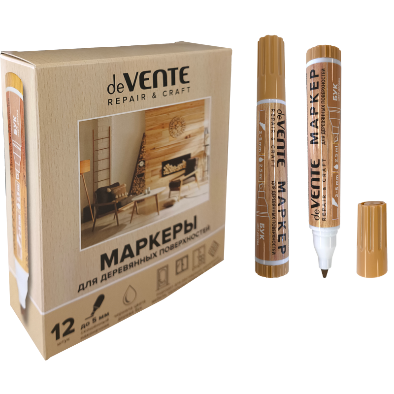 Маркер для деревянных поверхностей "deVENTE. Repair" бук круглый корпус, скошенный наконечник, ширина линии письма 1-5 мм