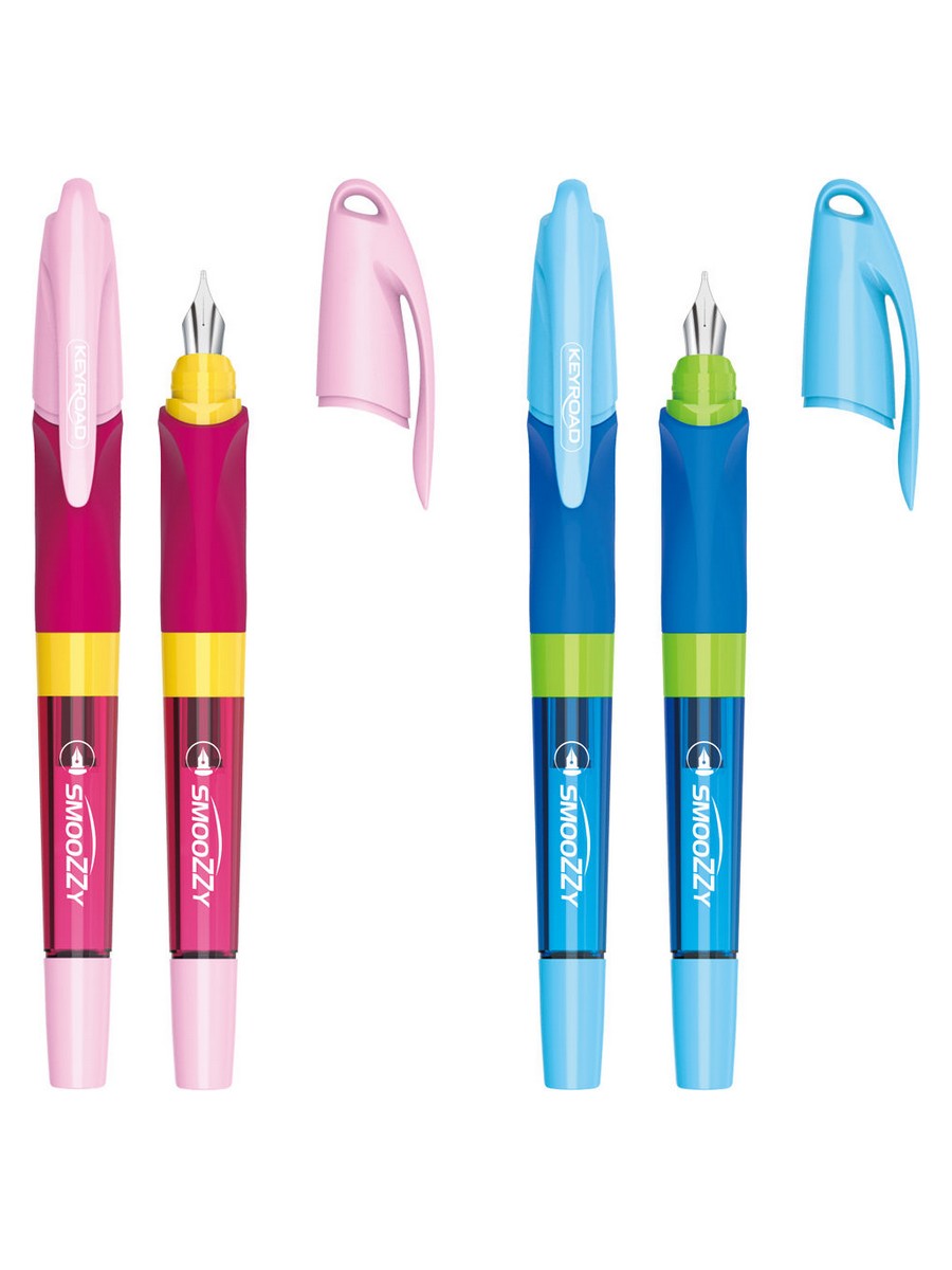 Перьевая ручка Keyroad Smoozzy - это стильная и удобная модель, которая доставит настоящую радость от письма. Чернила для перьевой ручки идеально ложатся на любую бумажную поверхность, создавая изящные линии и формируя идеальный почерк. Толщина линии 0,6 мм и иридиевый наконечник обеспечивают мягкое, ровное письмо и подходит для каллиграфии. Писать этой ручкой легко и приятно, нажим не требуется. Эргономичный трехгранный грип гарантирует удобный захват и легкость использования для детей. Ручка перьевая оснащена смотровым окошком для контроля уровня чернил. На колпачке имеется отверстие для подвешивания. Картридж с синими чернилами находится внутри корпуса ручки, поэтому её сразу можно использовать после получения. В набор дополнительно входят 2 картриджа с синими чернилами. Перьевые ручки - необходимая канцелярия для школы, дома и творчества. Подарок для учителя, подростков, художников, школьника, воспитателя. KEYROAD - инновационный, школьный бренд и крупнейший поставщик канцелярских принадлежностей