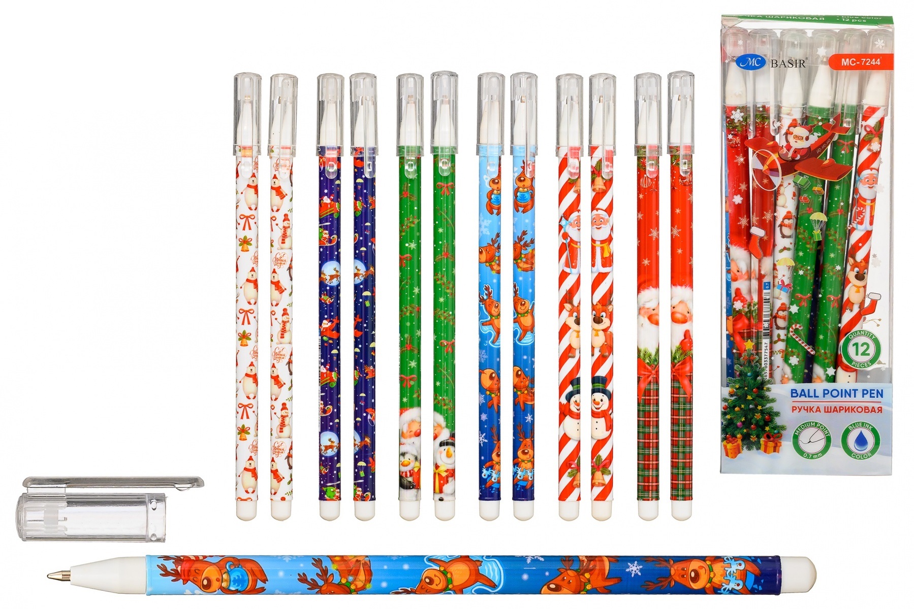 Ручка шариковая "НОВОГОДНИЕ" цветной корпус с рисунком 0,5 синяя