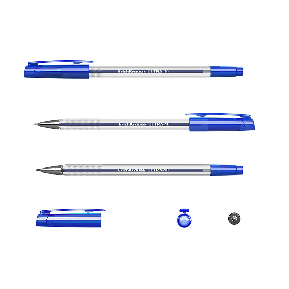 Ручка шариковая E.Krause "ULTRA L-10" прозрач.шестригран.корпус, металлизир.наконечник, игольч. 0,7мм (0,26 толщина линии) синяя