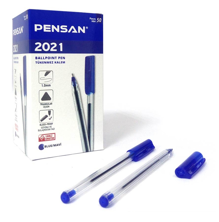 Ручка масляная PENSAN 2021 прозр.трехгранный корпус, игольч. 1мм, синяя
