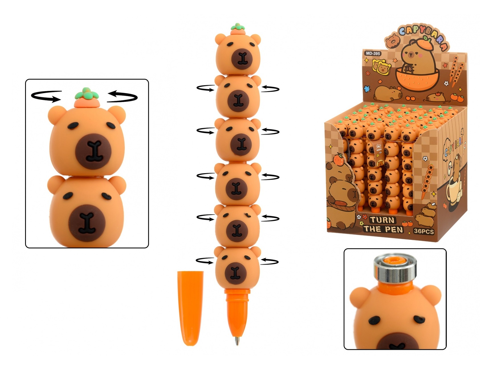 Ручка шариковая КАПИБАРА объёмный корпус с вращающимися фигурками-капибара, синяя