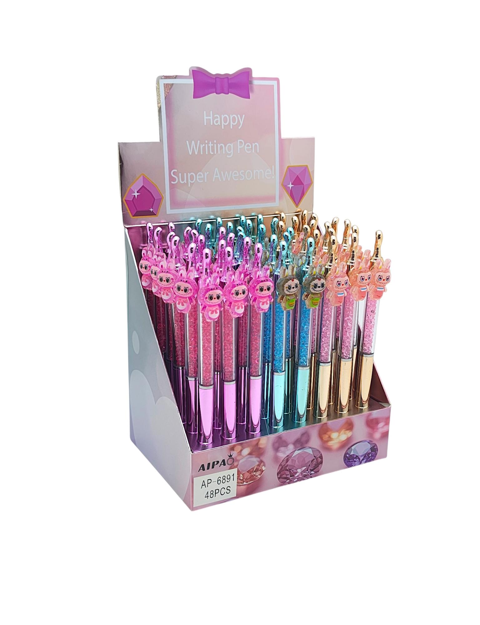 Ручка шариковая LABUBU 3 цвета корпуса, стразы, поворот.механизм, синяя