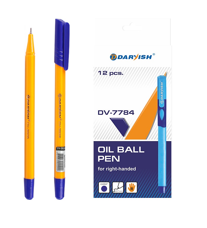 Ручка масляная DARVISH корпус трёхгранный оранжевый, синяя