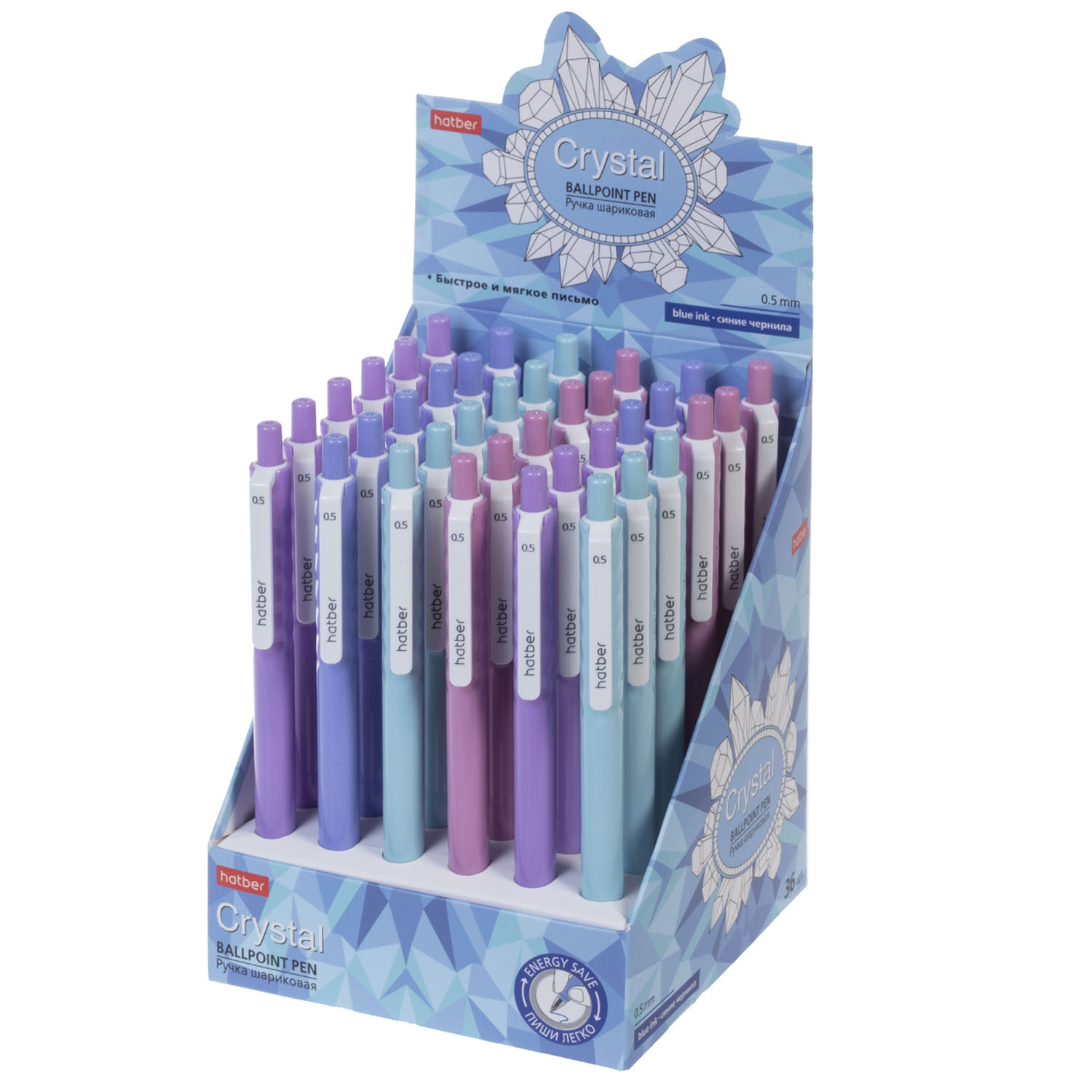 Ручка масляная автомат.Hatber CRYSTALL-Ассорти- 0,5мм чернила soft ink синяя
