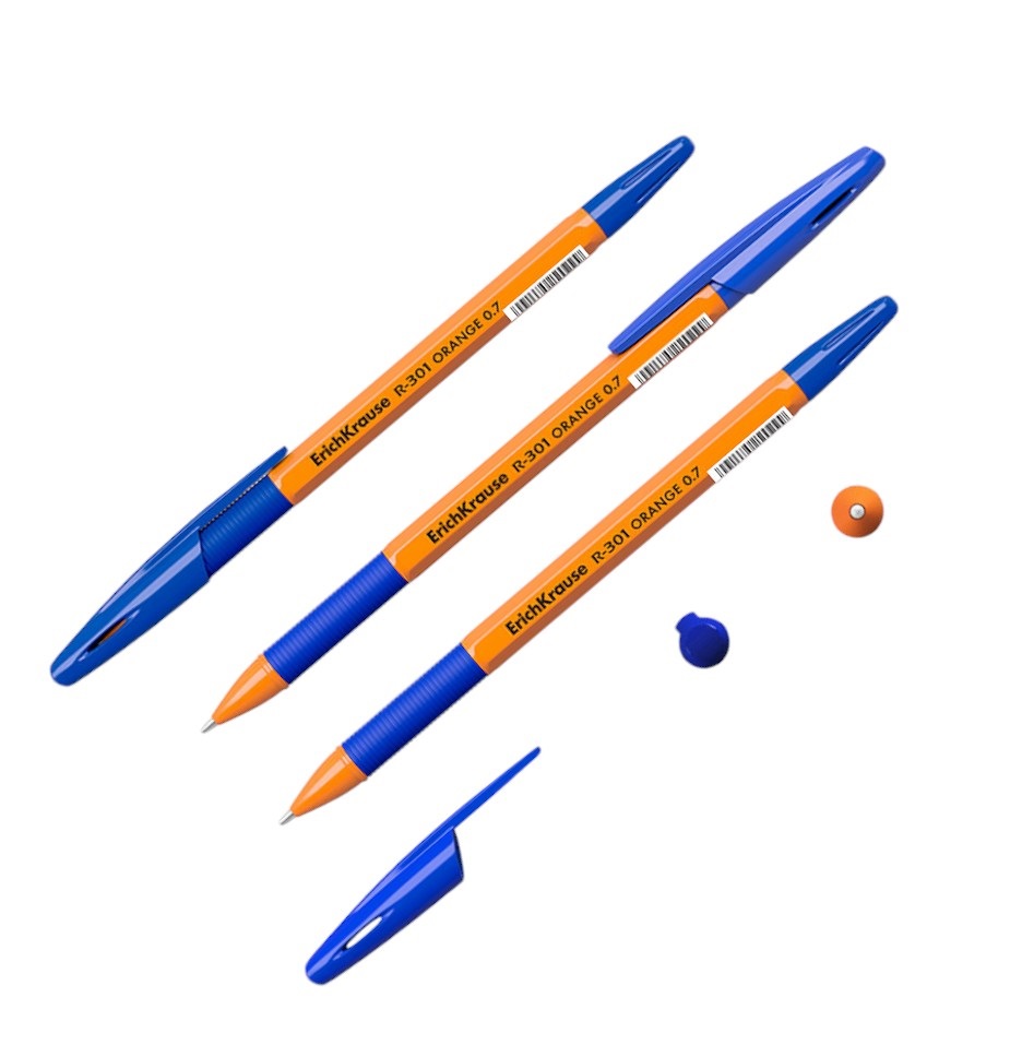Ручка шар. E.KRAUSE R-301 ORANGE Stick&Grip оранж.корпус с резин.синим держ, 0,7 (толщина линии 0,35), синяя