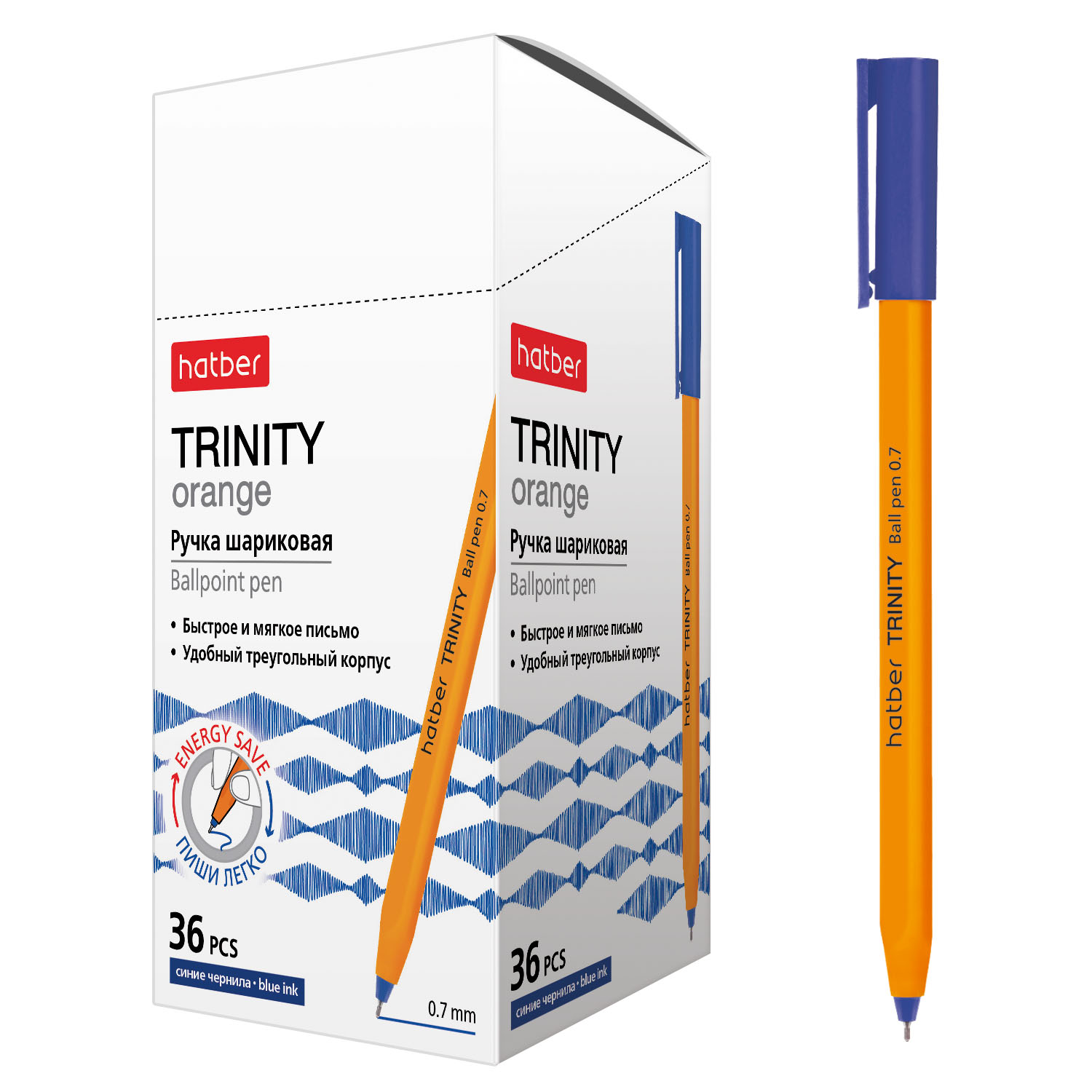 Ручка масляная Hatber TRINITY orange 0,7мм в дисплее, синяя
