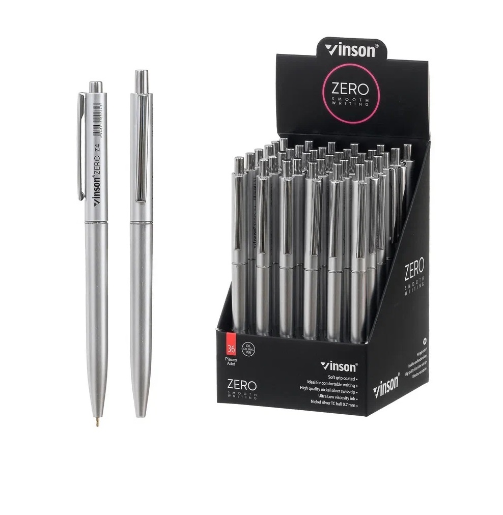 Ручка масляная автомат VINSON ZERO серебристый матовый корпус 0,7, синяя