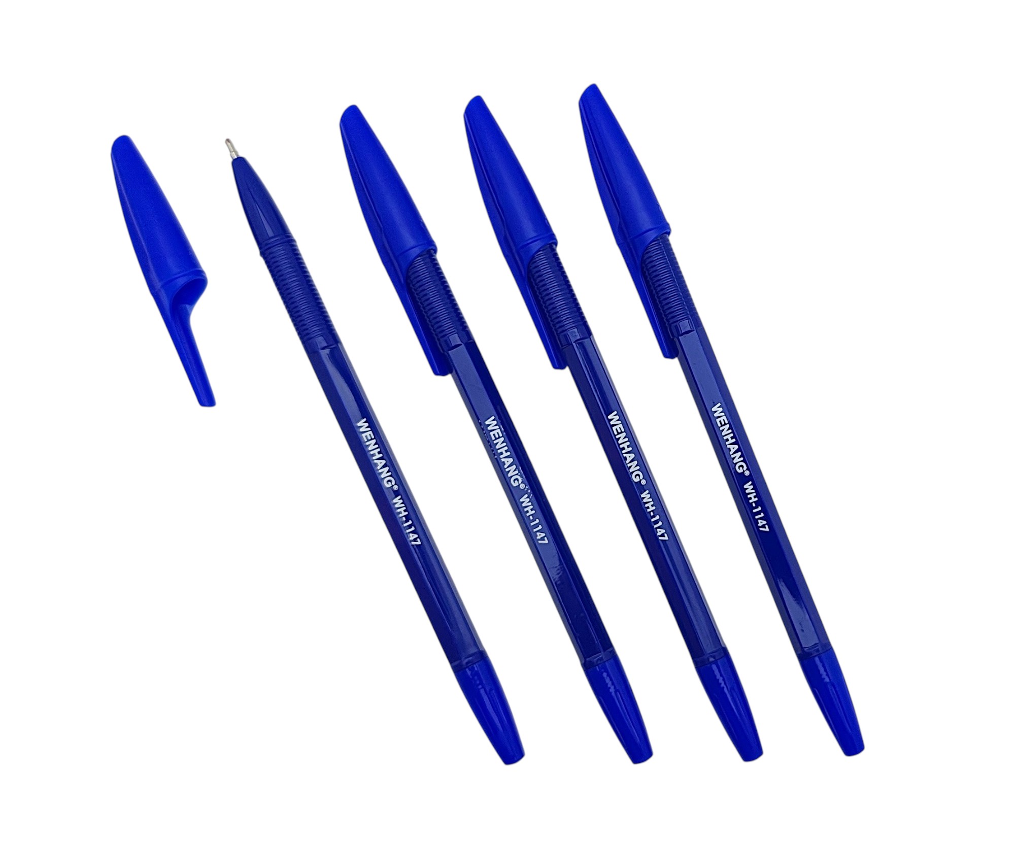 Ручка масляная WH синий корпус, рельефный держатель, игольч. 1мм , синяя