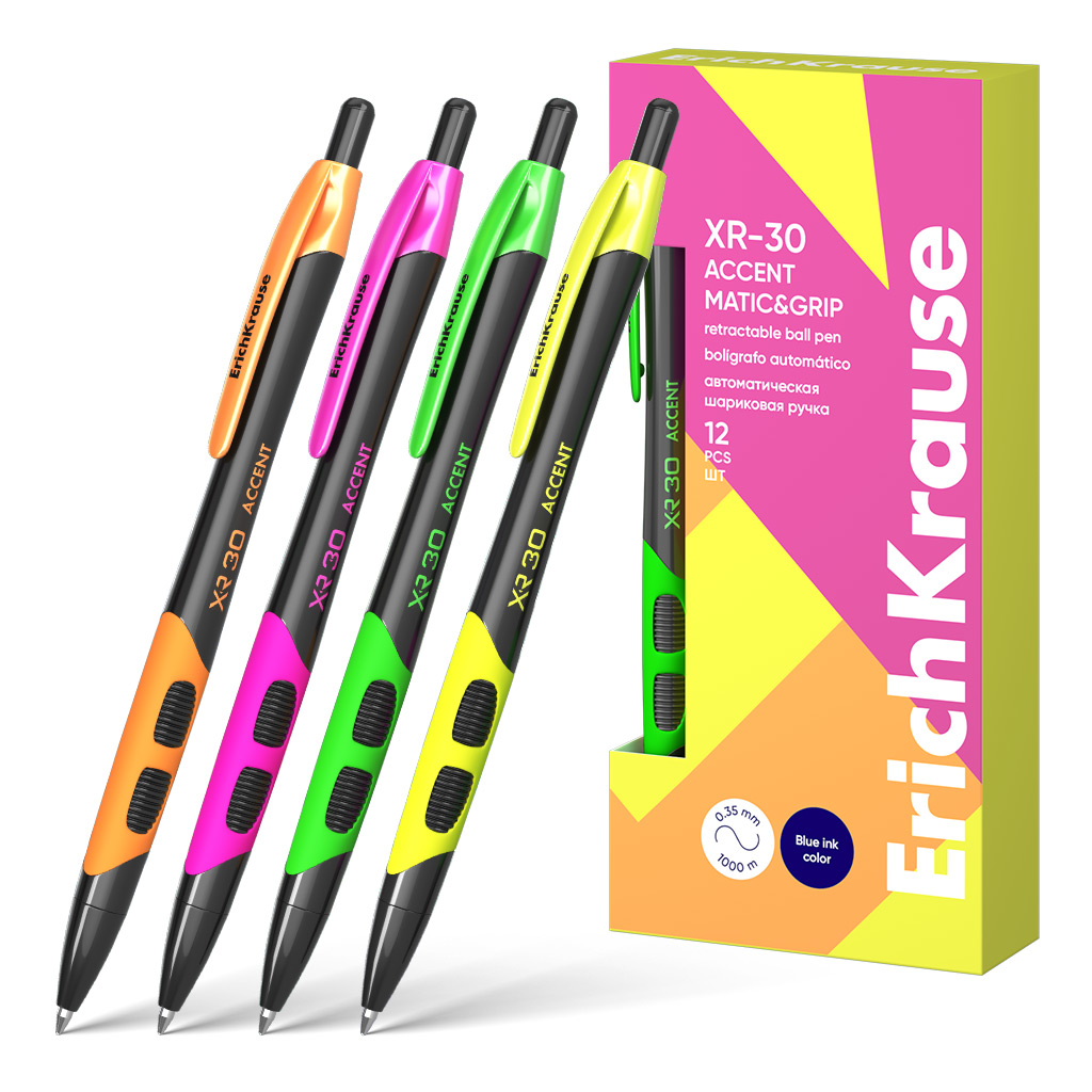 Ручка шариковая автоматическая ErichKrause XR-30 Matic&Grip Accent 0.7, цвет чернил синий