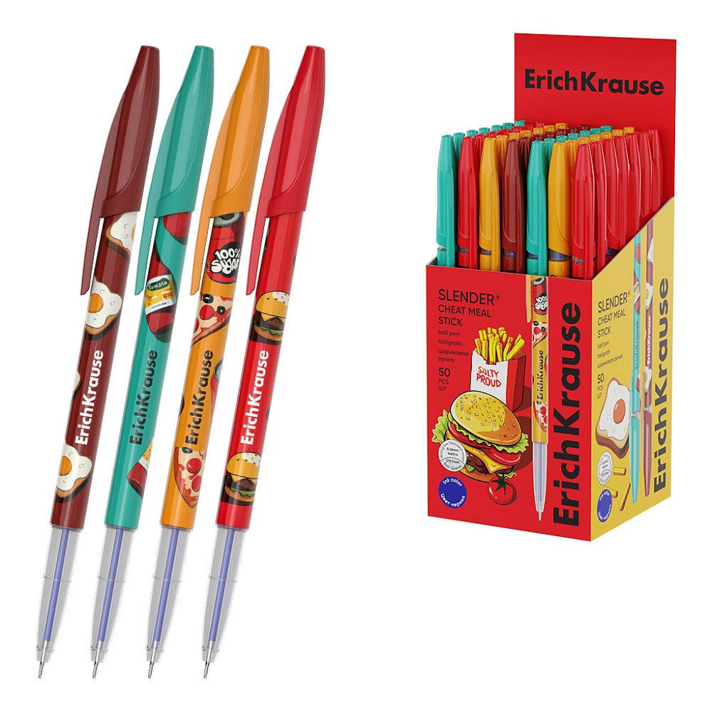 Ручка шариковая ErichKrause Slender® Stick Cheat Meal цв.корпус игольч 0.7, Super Glide Technology, синяя