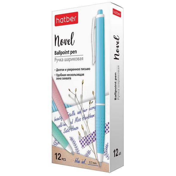 Ручка масляная автомат HATBER Novel 0,7мм с резиновым грипом, синяя