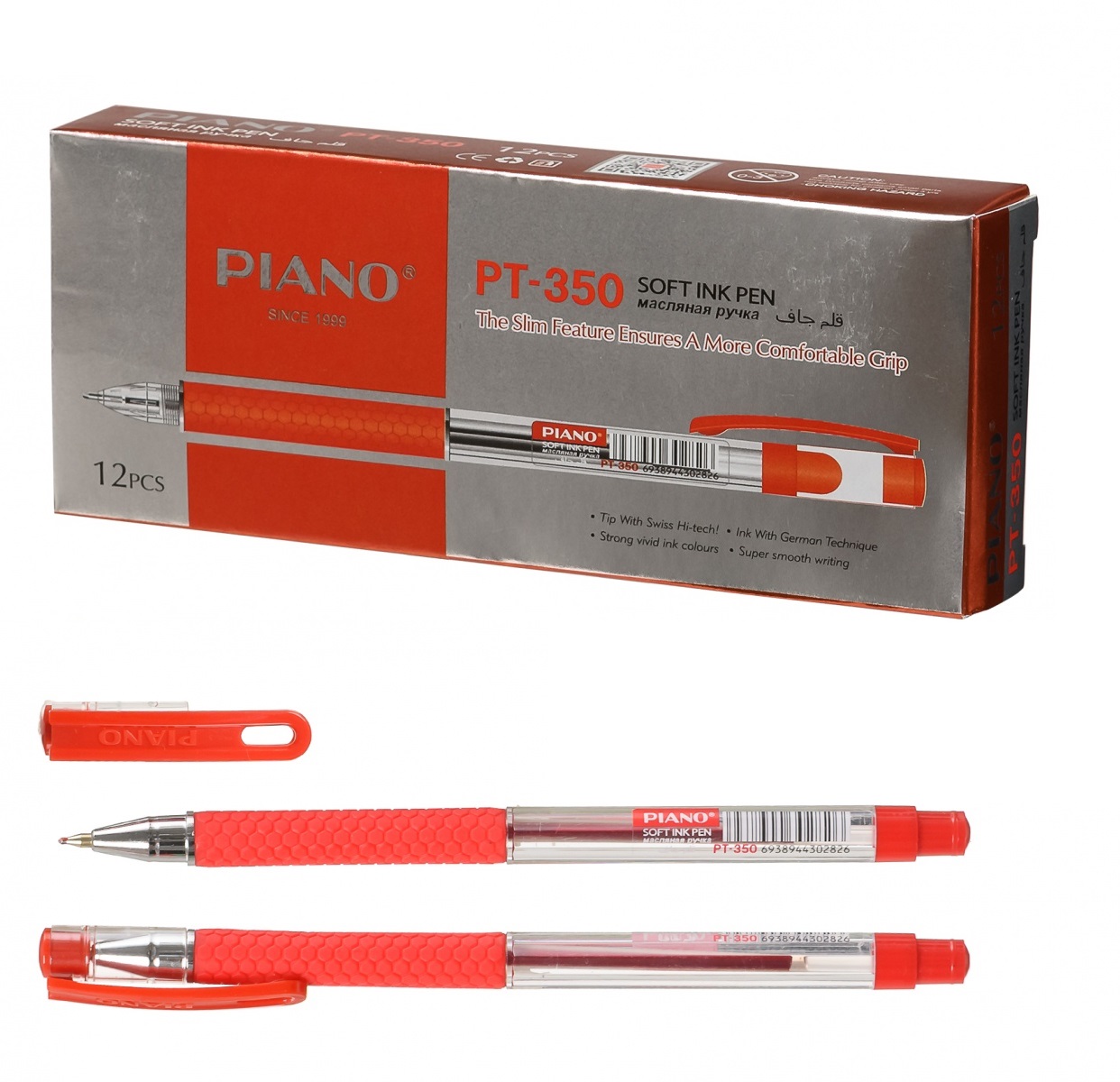 Ручка масл. PIANO прозрач корпус, с красн рез. держателем, игольч 0.5 красная