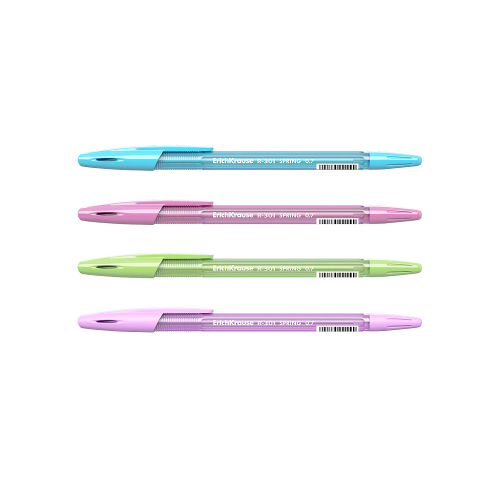 Классическая шариковая ручка Stick со стандартным типом пишущего узла и заменяемым стержнем. Ручка имеет полупрозрачный шестигранный корпус нежных пастельных цветов с удобной профилированной грип-зоной и вентилируемый колпачок. 5-канальный пишущий узел с диаметром шарика 0.7 мм в сочетании с быстросохнущими чернилами нового голубого цвета обеспечивает мягкое и быстрое письмо. Длина непрерывной линии составляет 2000 м при толщине 0.35 мм, что является одним из лучших показателей в своей категории. Модель R-301 Stick Spring 0.7 имеет узнаваемую запатентованную форму и стала одним из бестселлеров в ассортименте шариковых ручек ErichKrause более чем в пятидесяти странах мира.