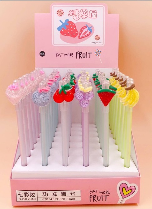 Ручка гел со стир чернилами ФРУКТЫ синяя