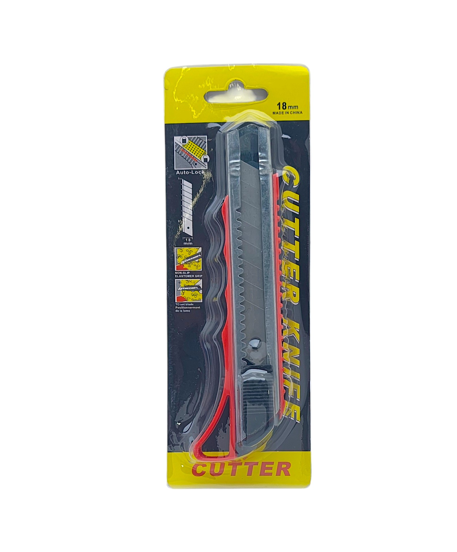 Нож канцелярский 18мм пласт.рифленый корпус, метал направляющие, цвета ассорти, блистер
