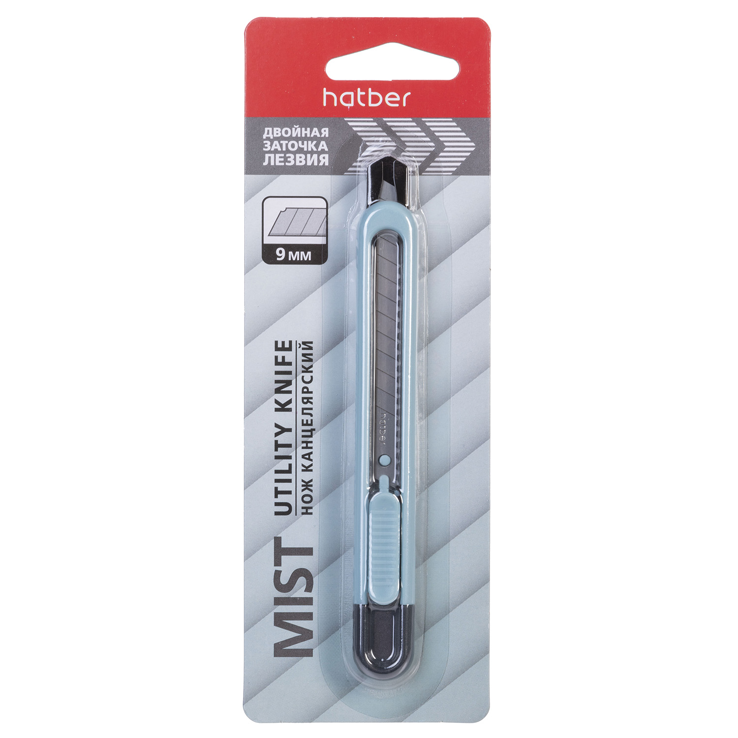 Нож Канцелярский Hatber Mist 9мм AUTO-LOCK металл.направл. в блистере с европодвесом