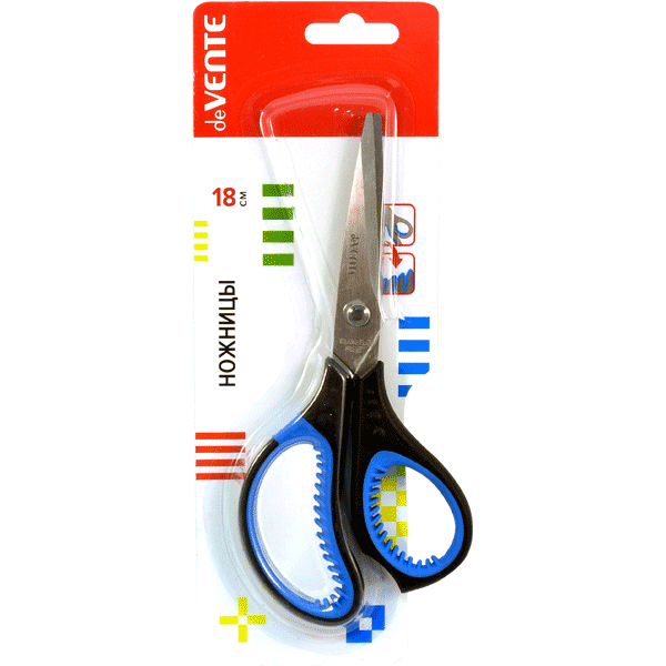 Ножницы deVENTE Gills 18 см, двухцветные прорезиненные кольца c лепестками, в карт.блистере