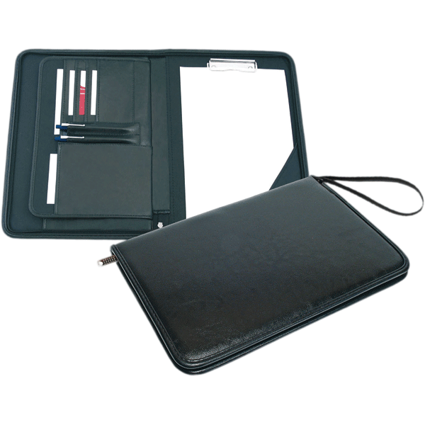 Папка деловая "deVENTE. Nottingham" 270x370 мм, искус. кожа, металлический прижим для бумаг, 2 кармана, отделения под визитки, на молнии, черная