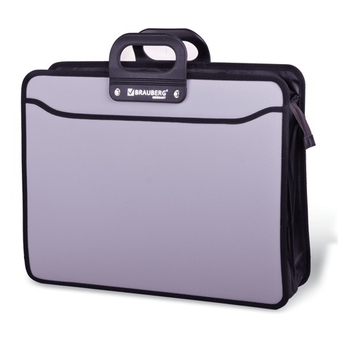 Портфель пласт. BRAUBERG ПОРТФОЛИО А3 3 отд, на молнии, серый