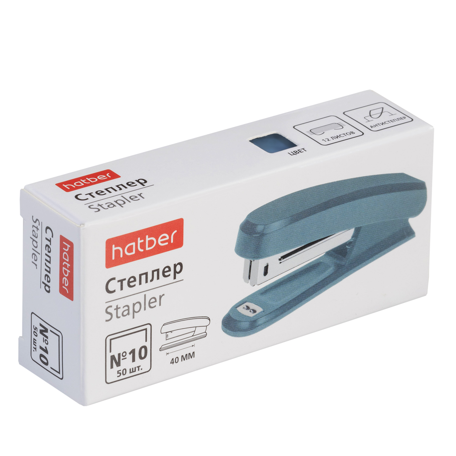 Степлер Hatber -Mist- №10 Пластиковый 12л 50 скоб захват 40мм с антистеплером Ассорти в картонной коробке